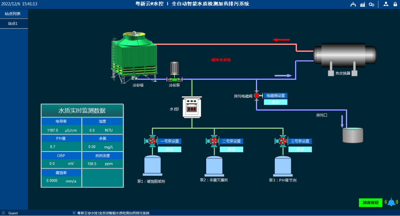 我司經過幾年的研發(fā)后,推出了屬于我們自己的粵新云@水控Ⅰ智能終端設備,實現了對循環(huán)冷卻水的各項指標的在線檢測(pH、電導率、藥劑濃度、余氯、ORP、濁度、腐蝕率等)以及遠程查看和遠程控制。
