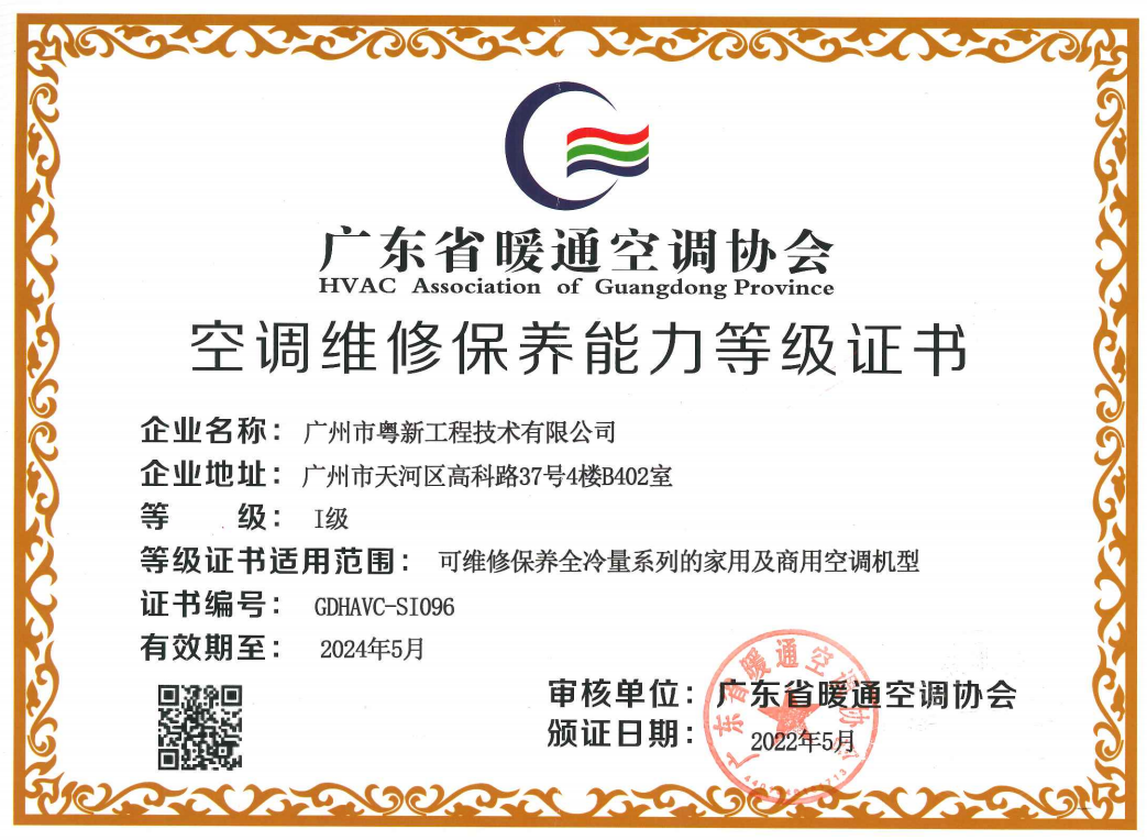 廣州粵新公司通過廣東省暖通空調(diào)協(xié)會維保資質(zhì)評審